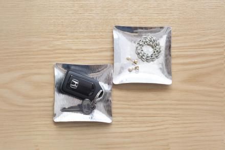 「すずがみ」は、折り紙のように簡単に折ったり曲げたり出来る錫製のアイテムです。何回も圧延を繰り返し、金鎚で叩くことにより通常の錫の板とは違い、曲げ伸ばしによる劣化を少なくしました。熟練の職人がリズミカルに叩いた錫の板は、金属層が幾重にも重なり合い繊維状になって、折り曲げによる金属疲労の度合いが減っています。食器としてはもちろんのこと、小物を置いたり、花器として使ったり、用途は多彩です。使う人自らが形づくり、楽しみながら様々なシーンでご使用ください。